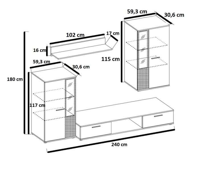 TV Cabinet (175,5 cm/27,7 cm/40,2 cm)